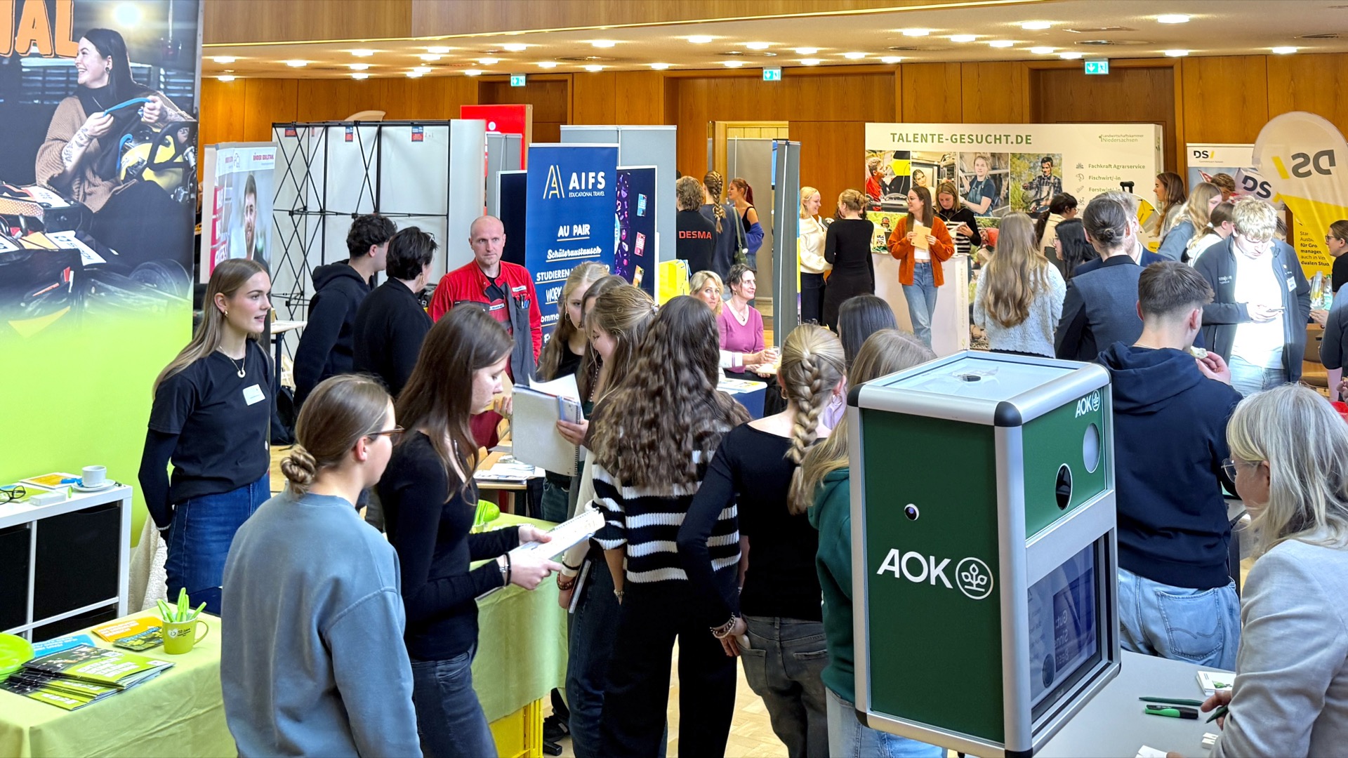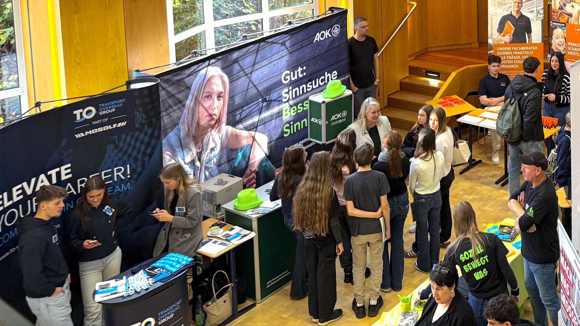 Bei der Berufsmesse "Abi – Was nun?" hatten über 850 Schülerinnen und Schüler unserer Schule am 13. November 2025 die Möglichkeit, sich über ihre berufliche Zukunft zu informieren. 50 Unternehmen informierten an Ständen in der Aula über Ausbildungsmöglichkeiten und Arbeitsfelder nach dem Studium.
