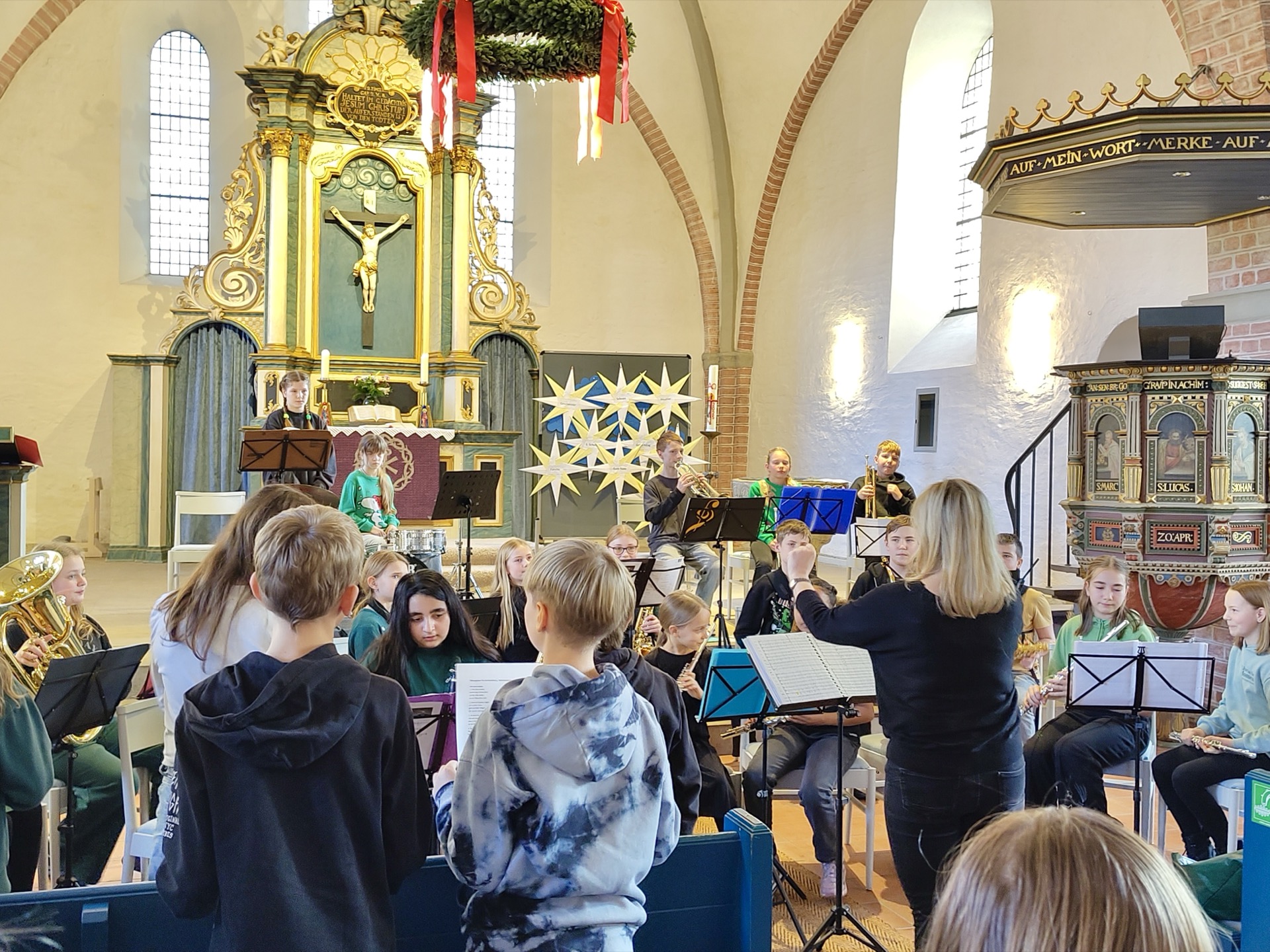 Am 12.12.25 machten sich die Religionskurse der 6. Klassen auf den Weg in die Laurentius-Kirche. Dort feierten sie die gemeinsam im Unterricht vorbereitete Andacht. Das Thema war Licht und Dunkelheit.