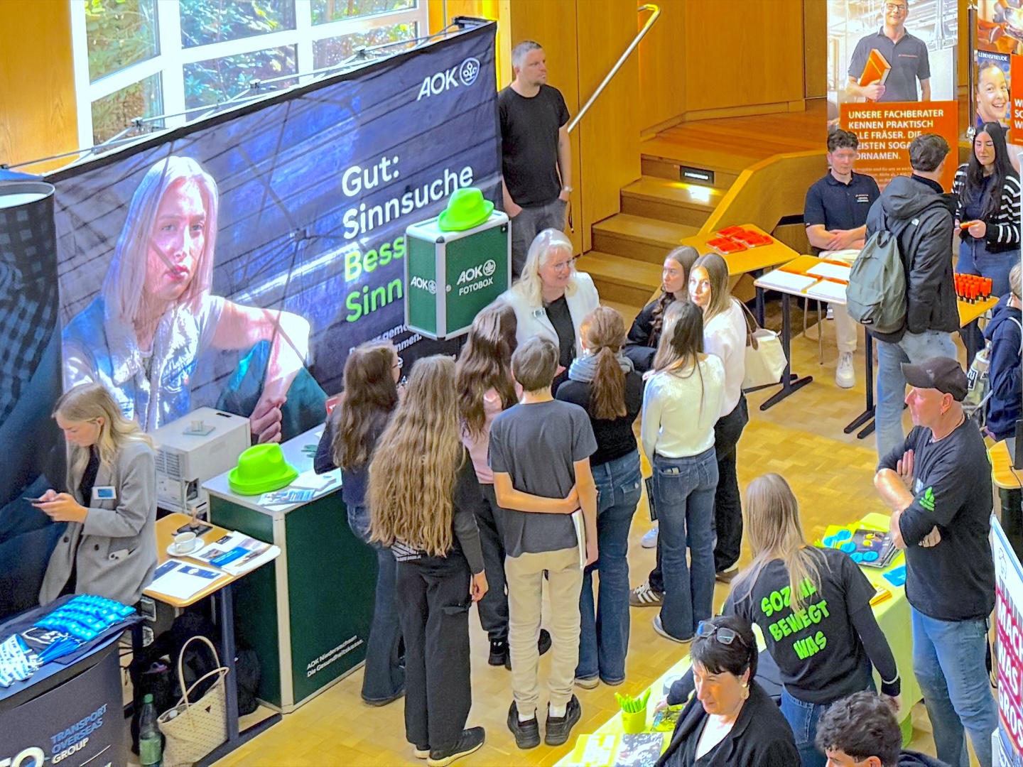 Bei der Berufsmesse "Abi – Was nun?" hatten über 850 Schülerinnen und Schüler unserer Schule am 13. November 2025 die Möglichkeit, sich über ihre berufliche Zukunft zu informieren. 50 Unternehmen informierten an Ständen in der Aula über Ausbildungsmöglichkeiten und Arbeitsfelder nach dem Studium.
