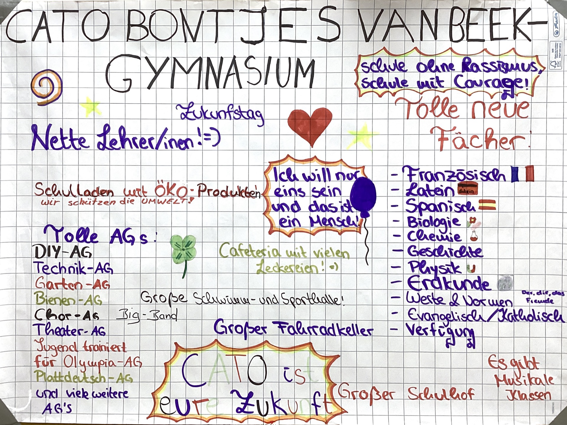 Am 14. November 2025 – am Geburtstag von Cato Bontjes van Beek – öffnete das Cato am Nachmittag seine Türen für alle interessierten Schülerinnen und Schüler und ihre Eltern. Nach einer Begrüßung durch die Schulleiterin Frau Ulrike Stepp in der Eingangshalle konnten die Gäste bei Schulführungen das Gebäude und die umfangreichen Angebote der Schule erkunden.