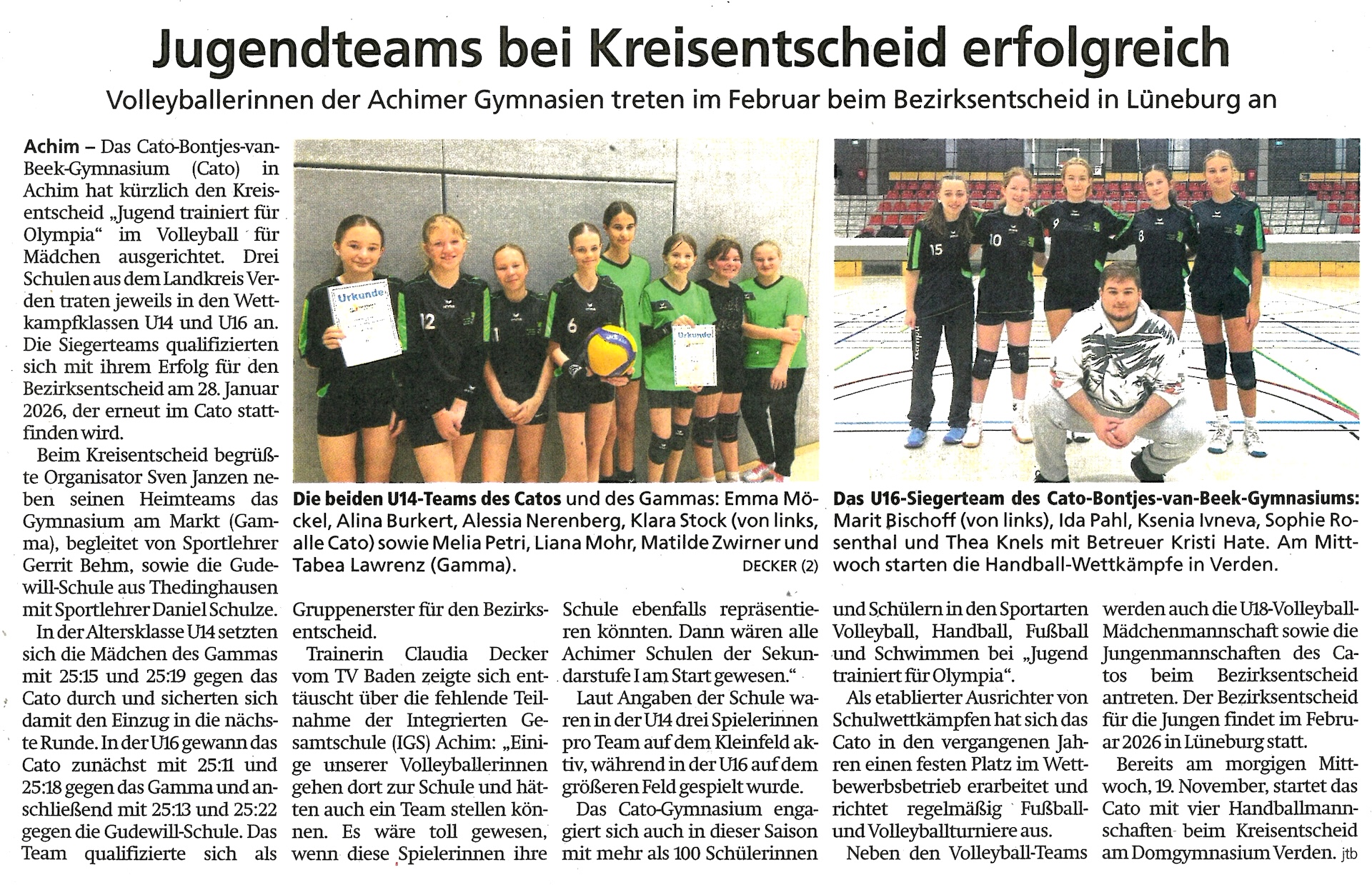 Cato-Volleyballteams erfolgreich bei Bezirksentscheid