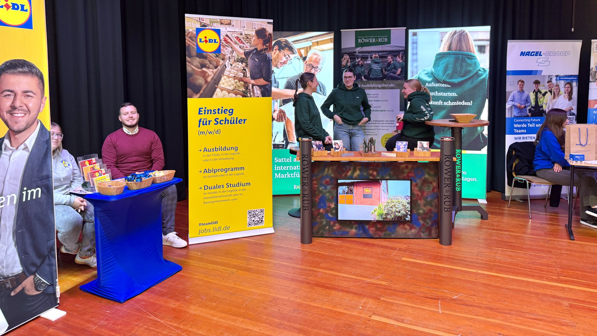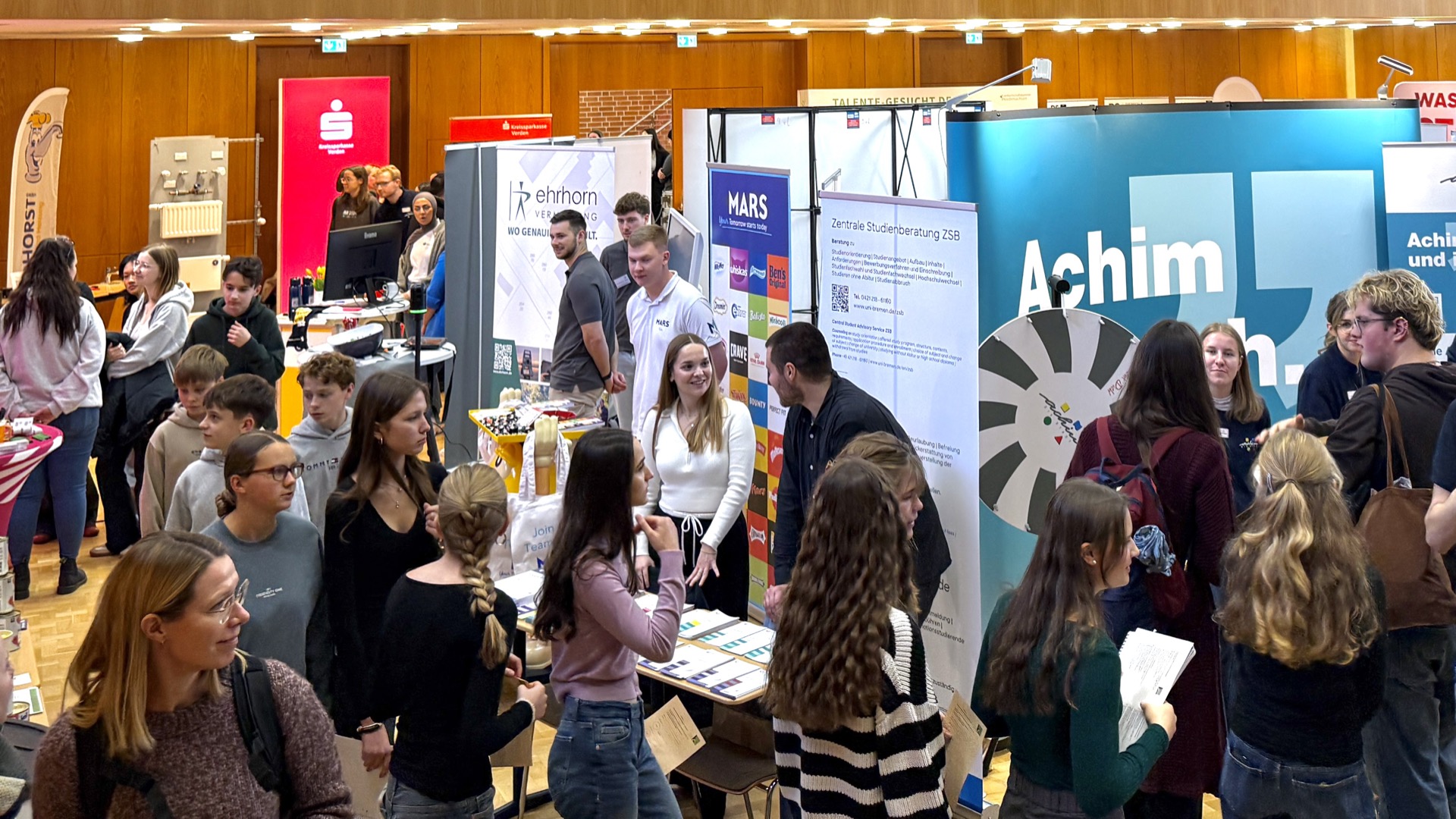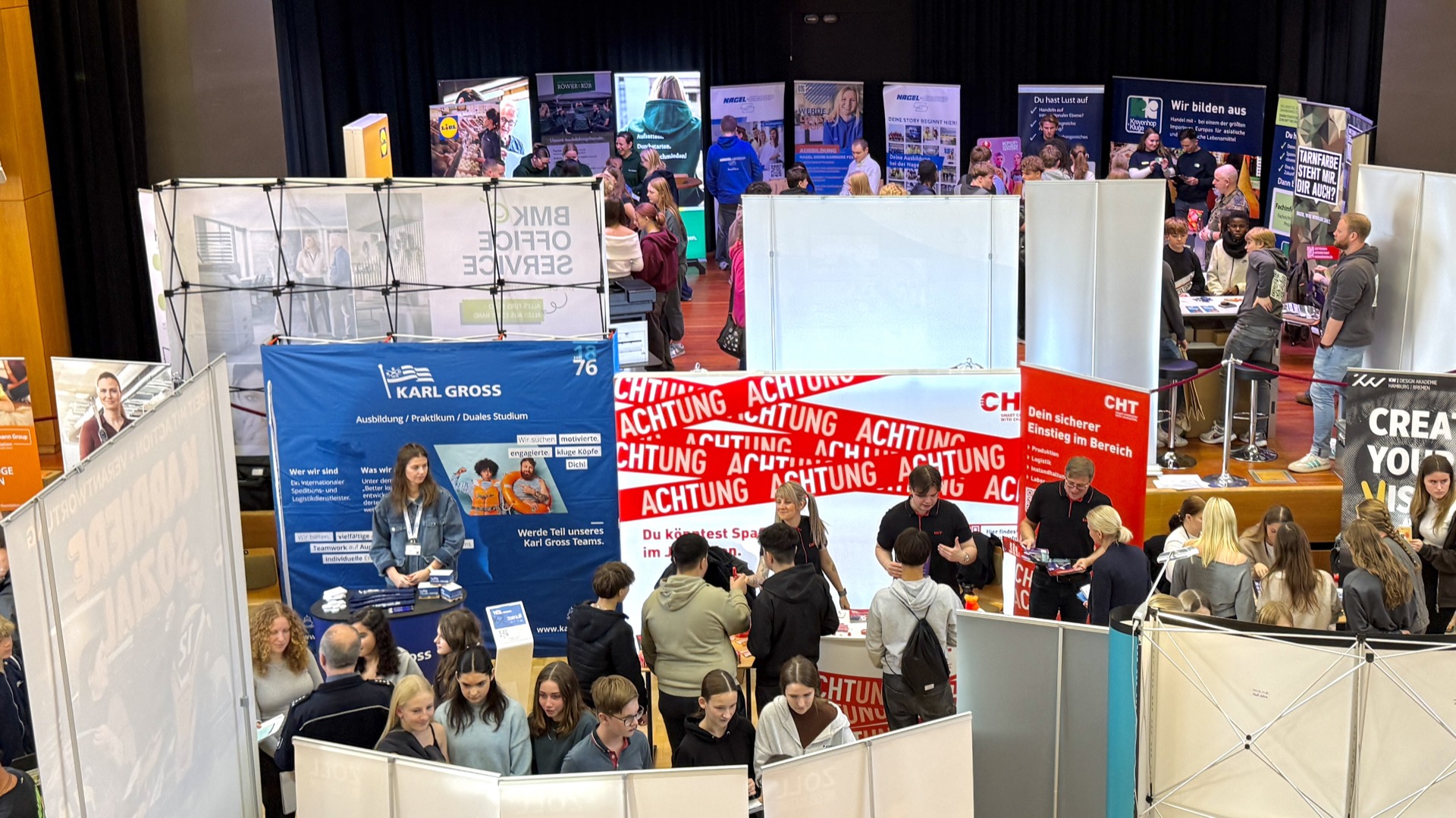 Bei der Berufsmesse "Abi – Was nun?" hatten über 850 Schülerinnen und Schüler unserer Schule am 13. November 2025 die Möglichkeit, sich über ihre berufliche Zukunft zu informieren. 50 Unternehmen informierten an Ständen in der Aula über Ausbildungsmöglichkeiten und Arbeitsfelder nach dem Studium.